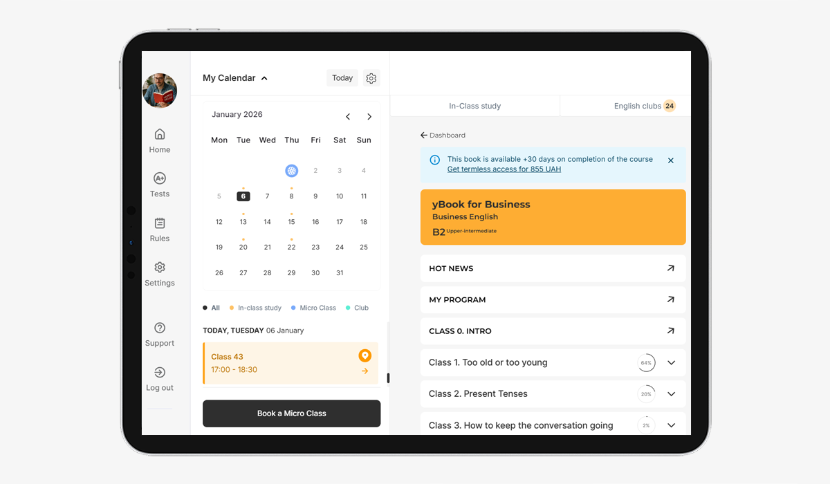Це означає, що HR не потрібно пояснювати формат корпоративного навчання англійської мови, збирати інформацію про рівні й дані вручну або відповідати на десятки однакових запитань у перші дні. Учасники отримують підтримку напряму від команди YAPPI.