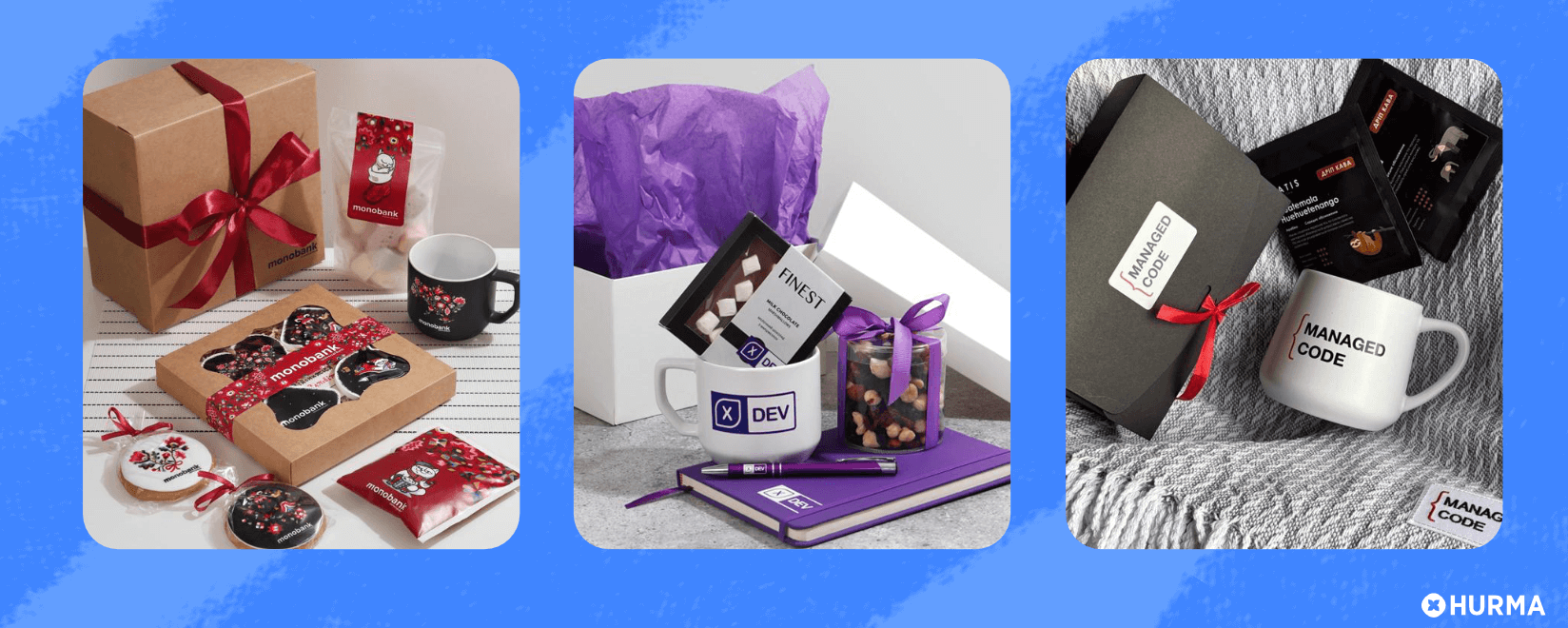 Керівниця Gifty Corporate Анна Веріс поділилась, що її улюблені новорічні кейси — подарункові набори в стилі етно для Monobank, а також лаконічний набір у фіолетовому кольорі для XDev. До першого увійшли дерев'яні новорічні прикраси, глазуровані імбирні пряники, чашка з мапою України, какао та маршмелоу, листівка з побажаннями – і все це в брендованій коробці з червоною стрічкою та папером тіш’ю.
