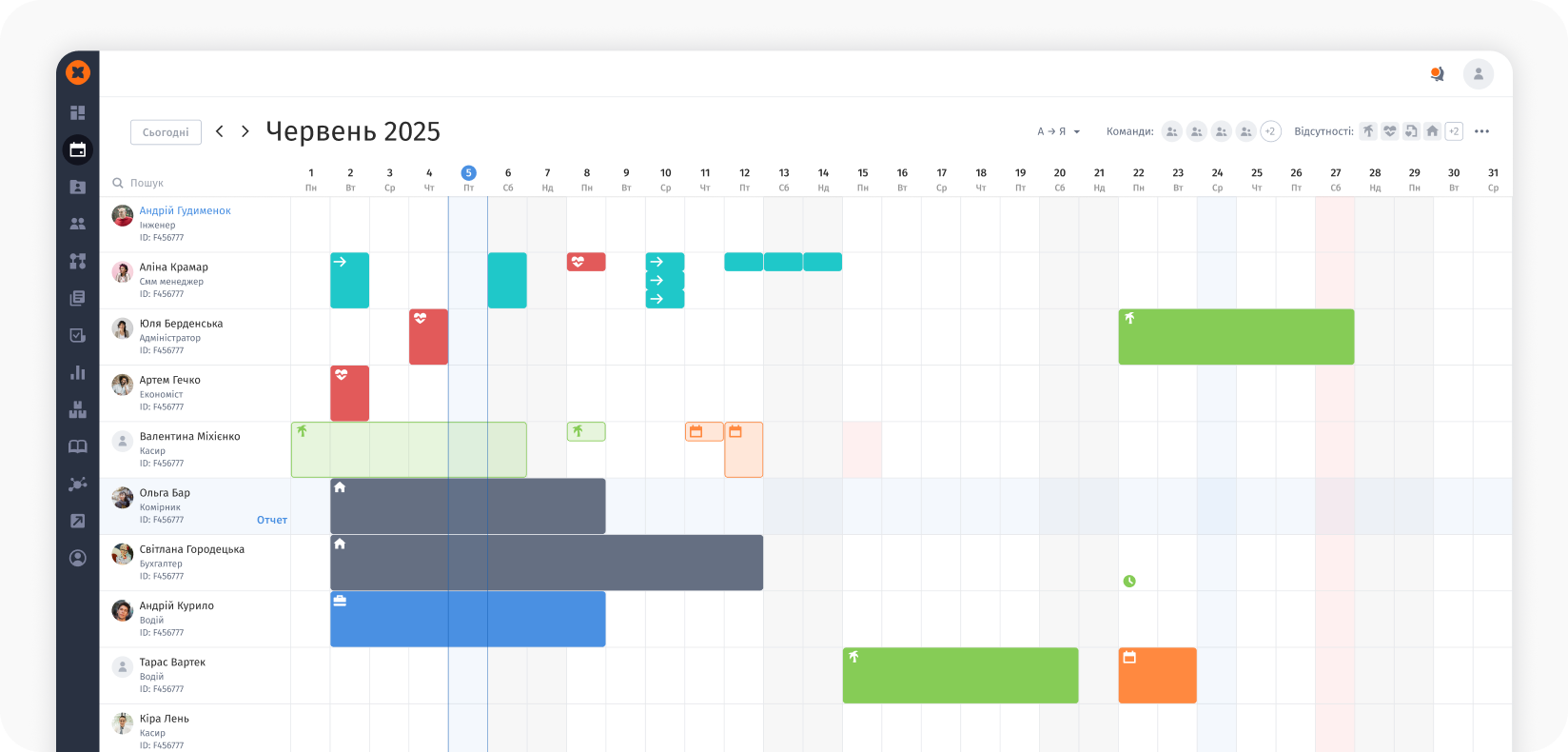 HURMA автоматизує облік відпусток, лікарняних та інших видів відсутностей. Це важливо не тільки для адміністрування, а й для того, щоб бачити повторювані патерни та ризикові ділянки в командах.
