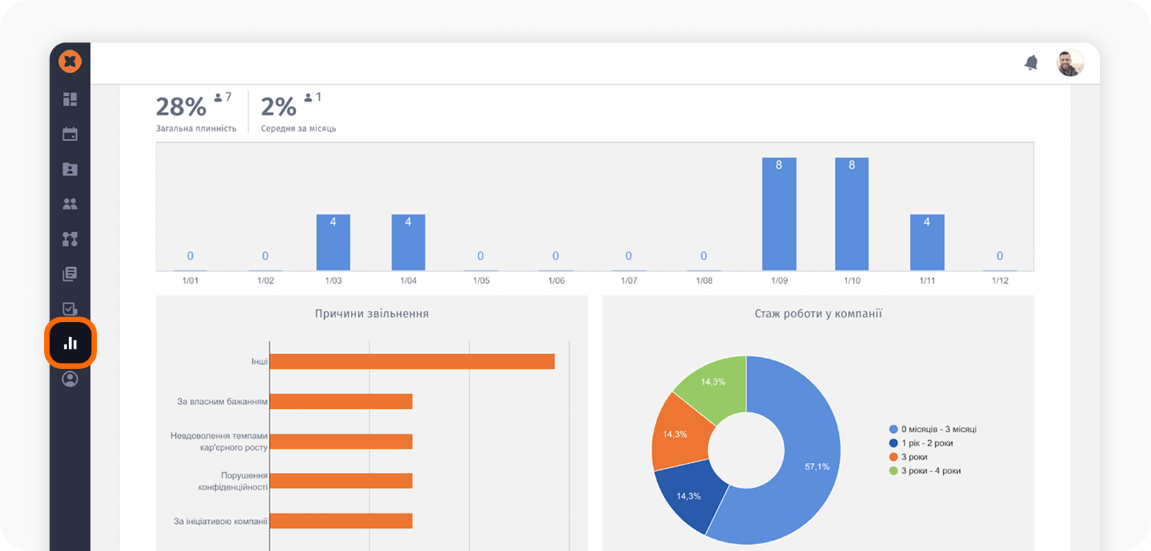 Система дозволяє дивитися на wellbeing не лише через відчуття, а й через дані: плинність, динаміку команди, лікарняні, відсутності та інші HR-показники, які можуть сигналізувати про перевантаження або втрату ресурсу.