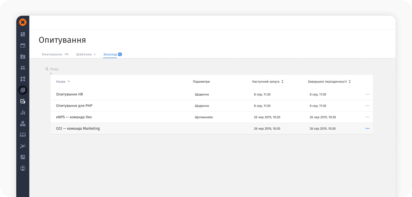 У HURMA можна регулярно проводити pulse-опитування, eNPS, моніторинг настрою та інші заміри стану команди. Це допомагає не діяти навмання, а бачити, де накопичується напруга, як змінюється залученість і які теми потребують уваги.