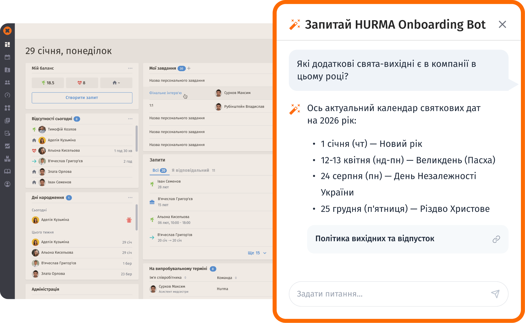 Замовте демо HURMA і подивіться, як система допомагає тримати процес під контролем від відгуку до виходу співробітника на роботу.