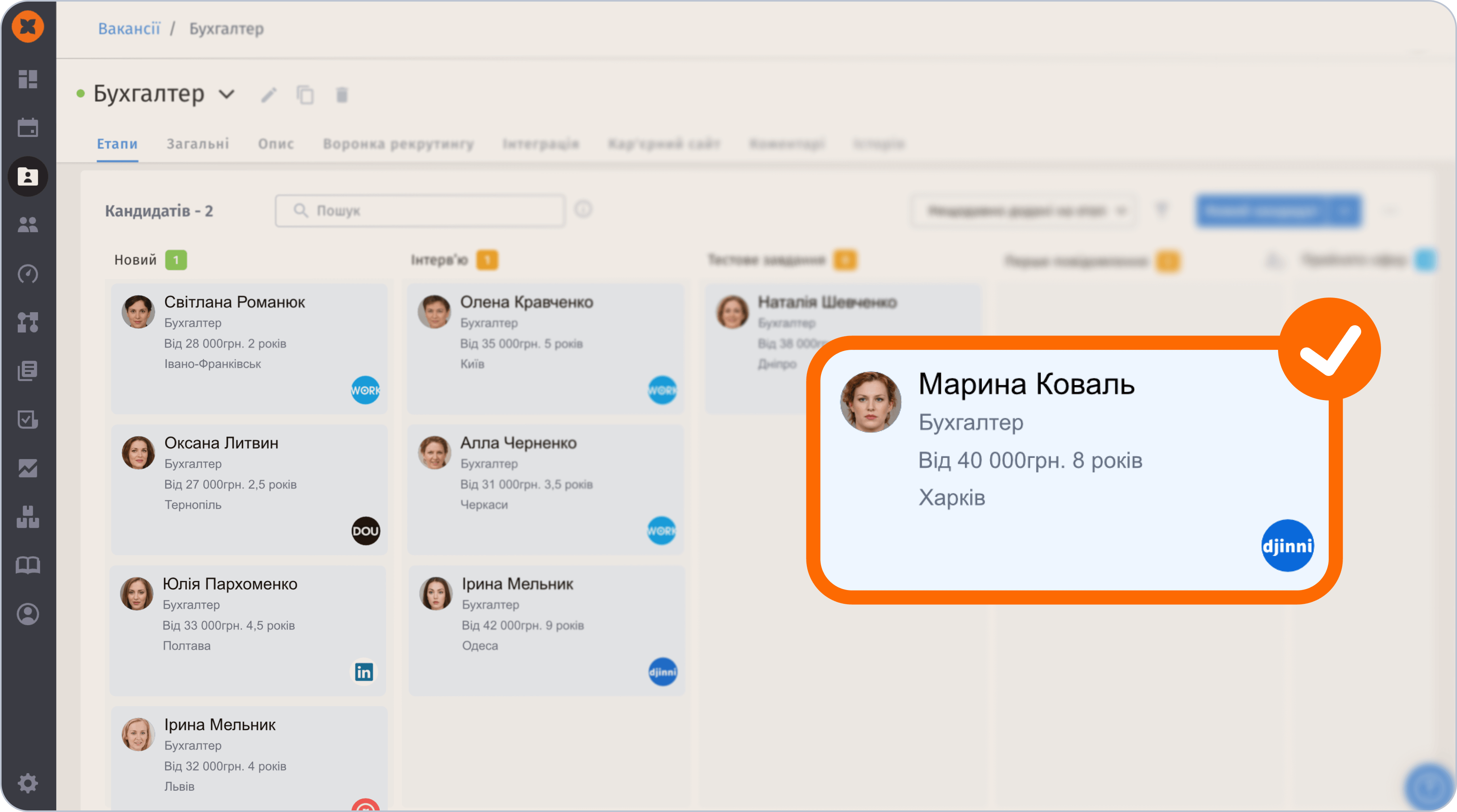 Система вивільняє час для задач, де справді потрібна людина: побудови відносин з кандидатами та командою, розуміння потреб бізнесу, пошуку талантів там, де інші не шукають: