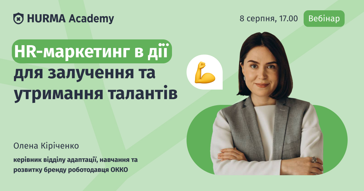 На вебінарі від HURMA «HR-маркетинг в дії для залучення та утримання талантів» ми поговоримо про створення привабливого бренду роботодавця. Як за допомогою даного інструменту залучати найкращих спеціалістів та зберігати ключові таланти у вашій команді.