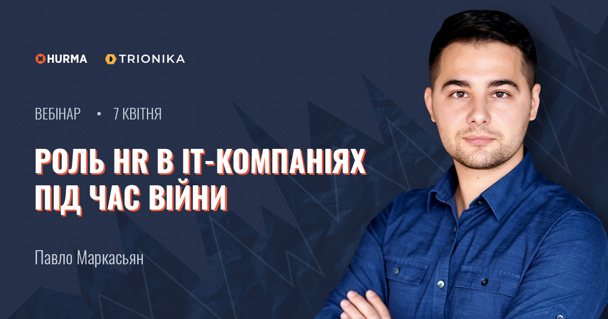 Як змінився ринок праці за понад місяць повномасштабної війни? Куди ми рухаємося і що буде далі? Як HR-у поводитися в нових умовах? Усі ці питання обговоримо з Павлом Маркасьян на благодійному вебінарі HURMA System: «Роль HR в IT-компаніях під час війни».