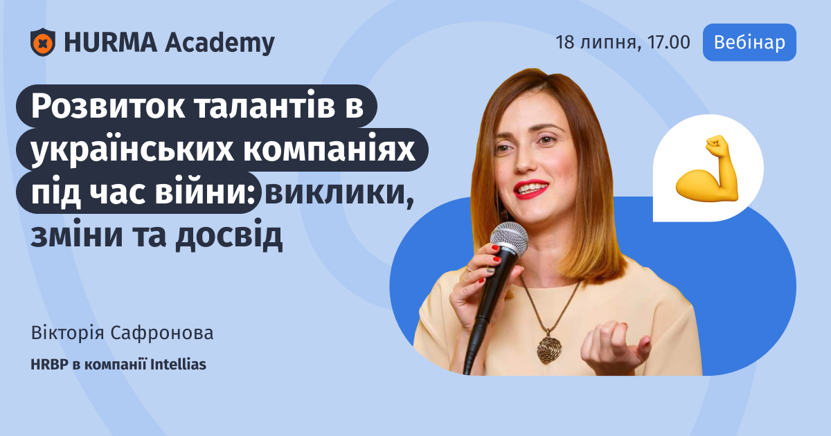 На вебінарі від HURMA «Розвиток талантів в українських компаніях під час війни: виклики, зміни та досвід» ми обговоримо які виклики стоять перед компаніями та співробітниками. Як змінилась стратегія та інструменти розвитку талантів під час війни. А також, як побудувати ефективну систему розвитку.