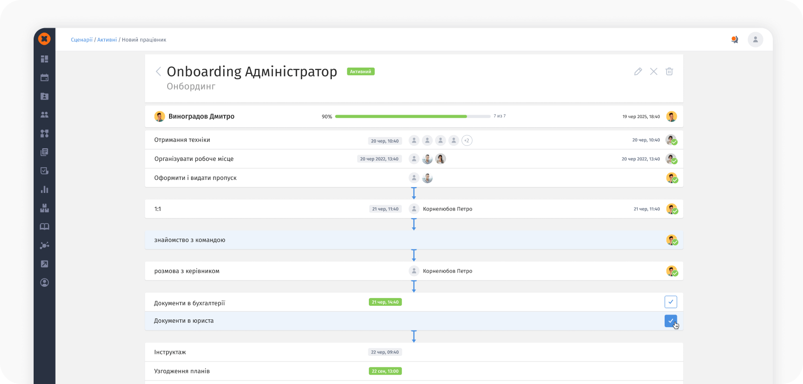 Структурированный онбординг в HURMA помогает стандартизировать эти процессы и контролировать этапы адаптации: